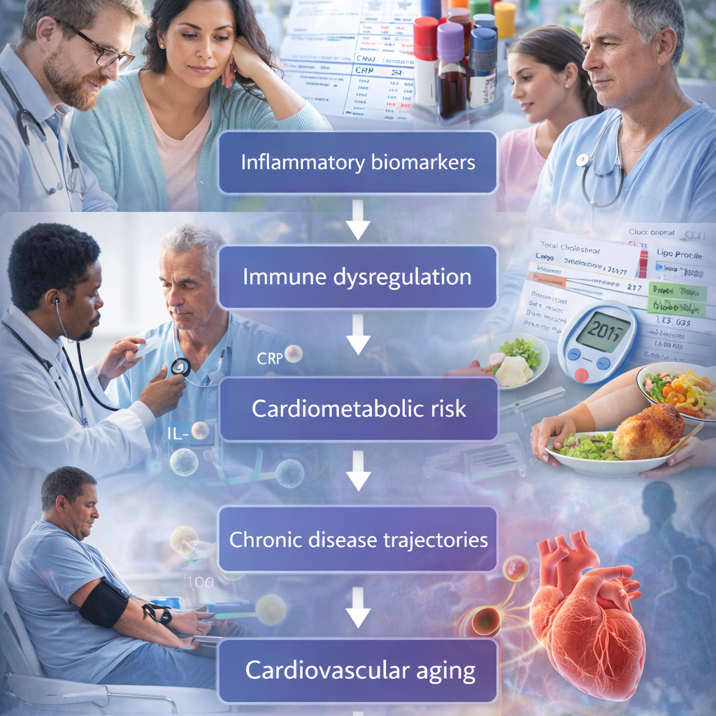 Using large longitudinal cohort datasets, I examine how biological markers such as CRP, IL-6, and composite inflammatory indices relate to disease trajectories in aging populations. This work integrates epidemiology, biostatistics, and translational medicine to better understand how immune dysregulation contributes to age-related cardiovascular risk, and how systemic inflammatory processes may link cardiovascular and neurocognitive ageing.