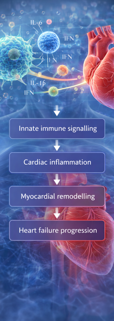 Cardiovascular disease is increasingly recognised as an immune-driven condition. My research focuses on understanding how innate immune signalling contributes to cardiac injury, inflammation, and myocardial remodelling following myocardial infarction.